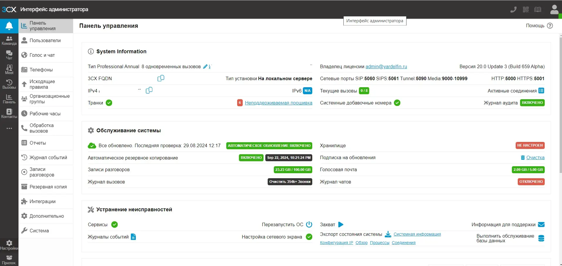 - Упрощение системы: Переход на единое решение 3CX позволил объединить внешние и внутренние номера в одной системе.